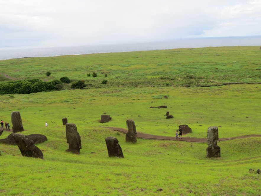 Huge, towering people standing shoulder to shoulder with their backs to the sea. These stone giants are most likely meant to honour chiefs and other important people. For more than a thousand years – no one knows their exact date – they have been standing here, silently. Only a few statues face out over the sea, looking in the direction of other Polynesian islands, possibly the Marquesa Islands from where the first inhabitants of Easter Island might have come by canoe.