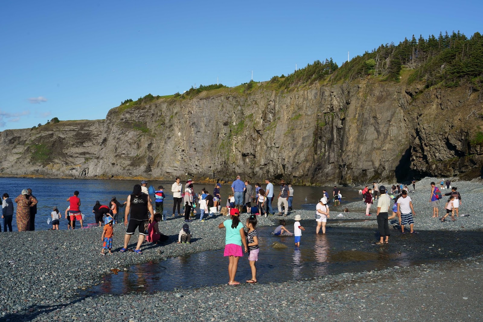 It turns out that "rolling" means that millions of capelin come in to shore to spawn on the beaches. This happens only once a year for a few days. And the locals come in to scoop up the capelin in nets or any handy container. It's a happening scene. You only have to wade into the ocean up to your ankles to scoop up buckets of fish. People of all ages were happily gathering dinner and walking off with shopping bags full of fish. It's quite a defining moment for local culture.